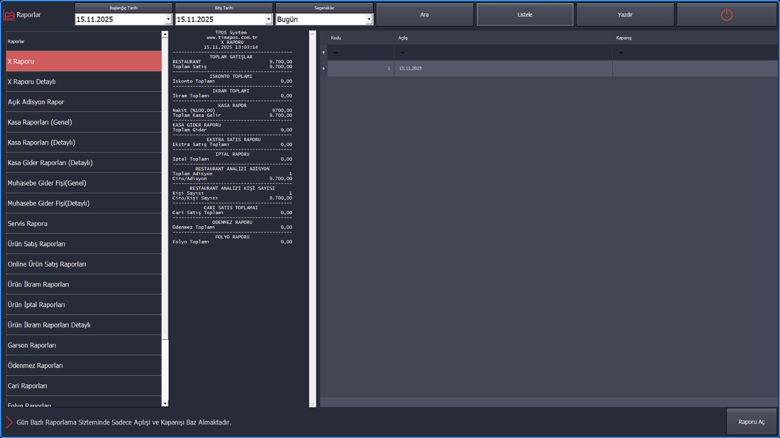 5. İşletme, günün sonunda tüm masalarda yapılan işlemleri ve ödenen hesapları Timeout otomasyon sistemi aracılığıyla kolaylıkla inceleyebilir.